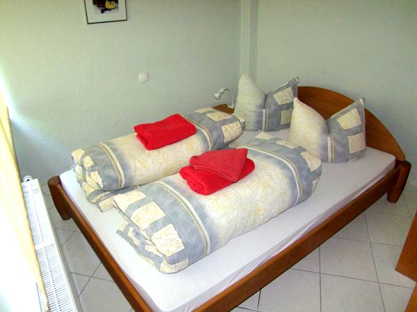 Die Ferienwohnung 1 besteht aus einem kombinierten Wohn- und Schlafraum mit Doppelbett für 2 Personen mit einer Aufbettungsmöglichkeit auf der Schlafcouch oder im Kinderbett.