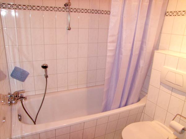 Ein modernes Badezimmer mit Badewanne sowie ein kleiner Flur vervollständigen die insgesamt ca. 50 qm große Ferienwohnung.